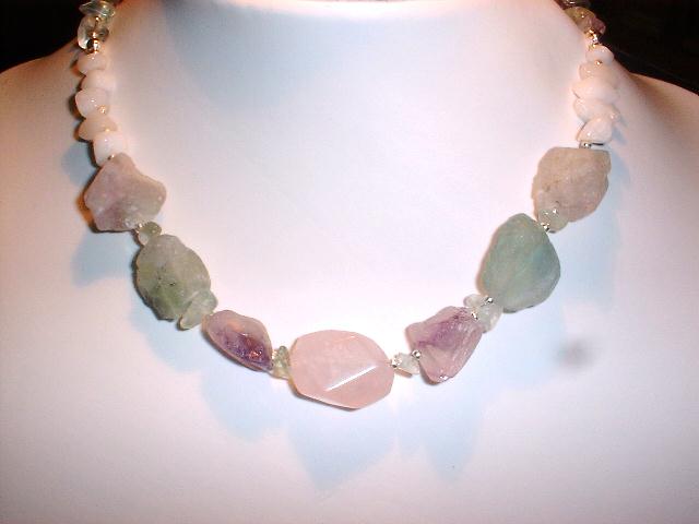 BT ketting met rozekwarts en amethist, 80 cm lang